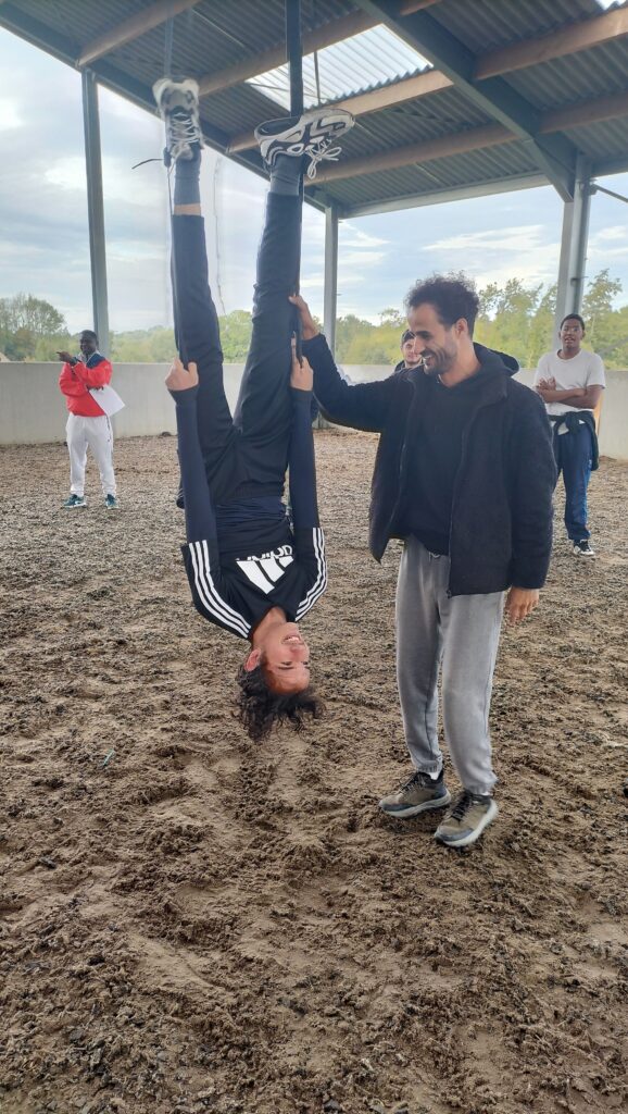 Younes fera découvrir son art : les sangles aériennes. Un art de cirque qui mêle à la fois souplesse, puissance et technique. Celui-ci se pratique à l’aide de deux sangles dissociables l’une de l’autre qui tombent à la verticale et avec lesquelles il est possible de tourner, pivoter, se balancer, danser et jouer avec les mains, les pieds, le corps, …